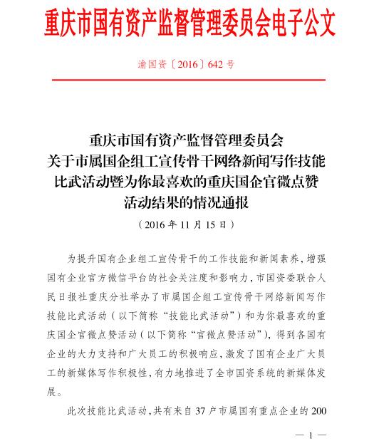 重慶國資網(wǎng)絡新聞寫作比武活動獲獎情況通報